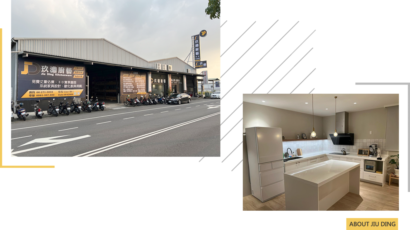 玖濎廚櫃系統傢俱位於台南,是在地專業的全屋裝潢設計與系統櫃規劃專家。我們以工廠直營的優勢,結合專業室內設計師團隊,提供從廚櫃訂製、系統傢俱設計、空間規劃到全屋裝潢施工的一站式整合服務。